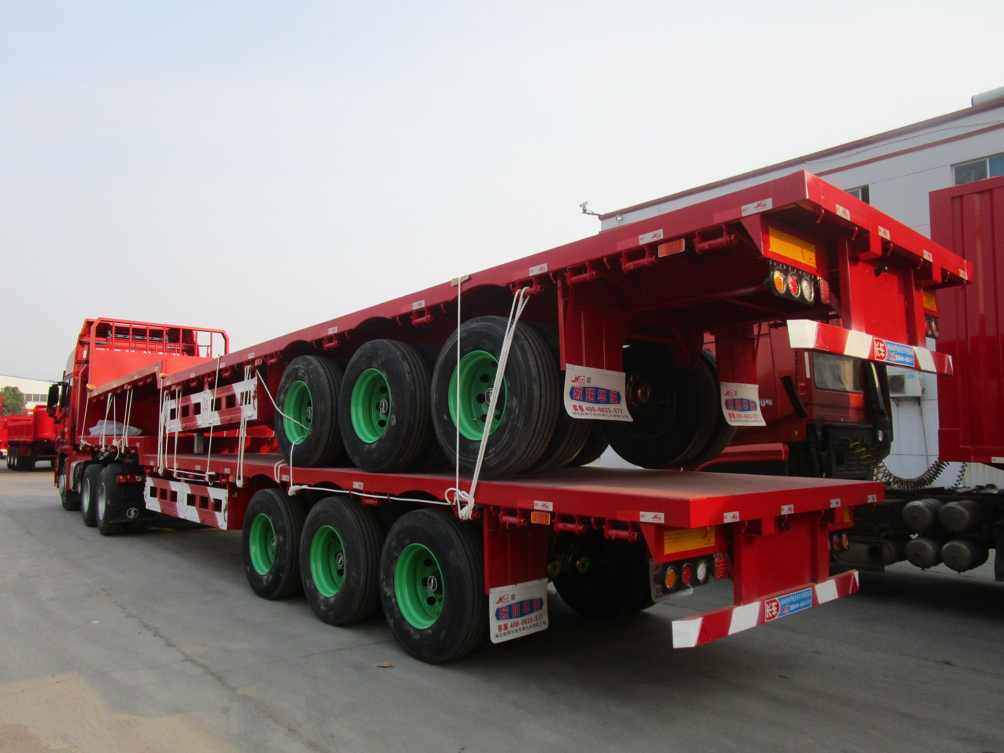 提車喜訊丨13米鵝頸式平板半掛車交付駐馬店客戶