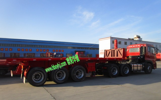 歐陽華俊9米低平板3軸集裝箱半掛車配東風天龍啟航版420馬力圖片(3)