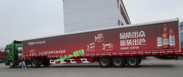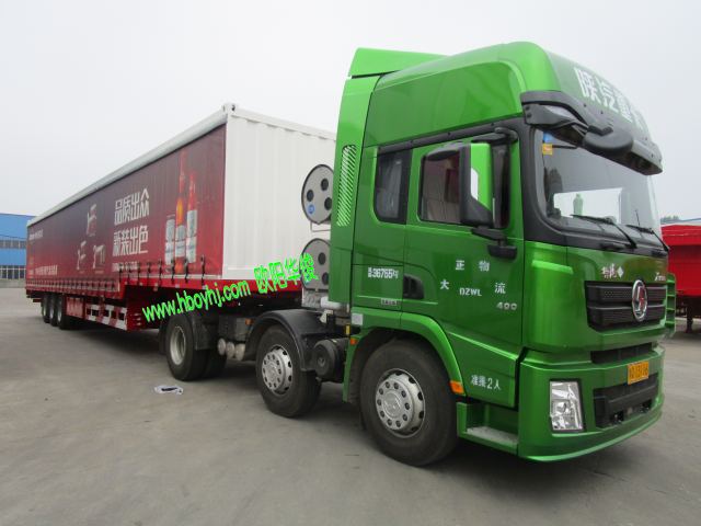 歐陽華俊蓬布側簾半掛車廂配陜汽德龍X3000 綠色LNG 牽引車圖片(4)