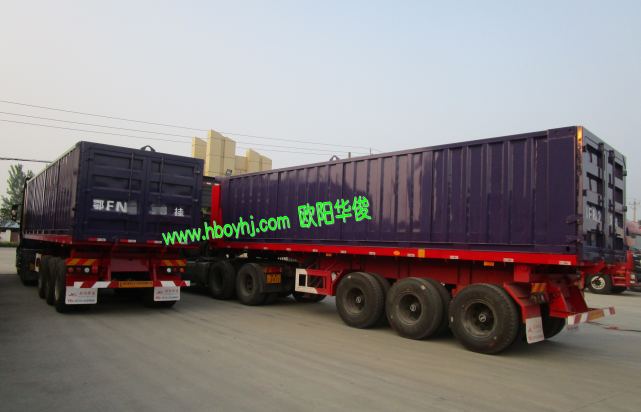 歐陽華俊2臺9米集裝箱平板式后翻自卸半掛車圖片(1)