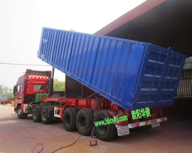 歐陽華俊9.5米藍色集裝箱后翻自卸半掛車-圖4