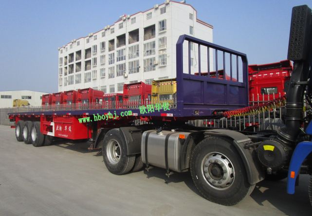 歐陽華俊13米紫色低平板半掛車-圖3