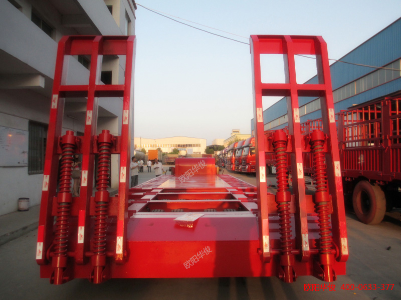 車貨架臺(tái)柱平面低,保證了運(yùn)輸?shù)钠椒€(wěn)性,適宜運(yùn)載各類工程機(jī)械、大型設(shè)備和鋼材等;采用三軸平衡式、雙軸平衡式或鋼性懸架,在前后鋼板彈簧之間有質(zhì)量平衡塊,可使前后鋼板彈簧的撓度等量變化,使前后軸受力均衡等。