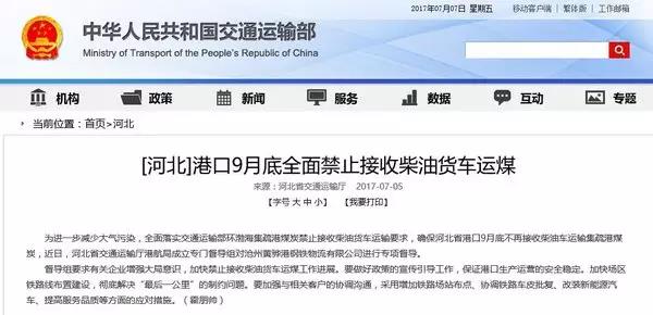 卡友注意啦!河北交通廳發布:為減少大氣污染,港口9月底全面禁止接收柴油貨車運煤!