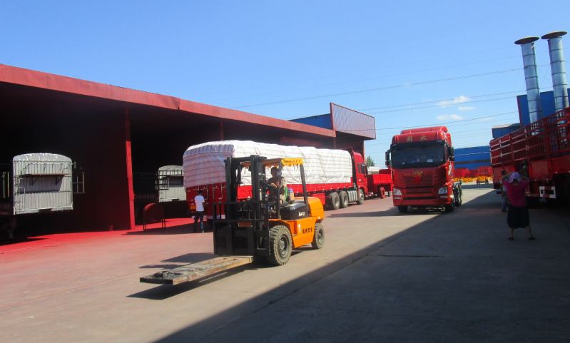 開(kāi)叉車(chē)的師傅們冒著高溫酷暑轉(zhuǎn)運(yùn)各種半掛車(chē)廂