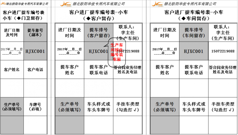 二、下面是載貨車廂系列《客戶進廠提車編號表》樣本: