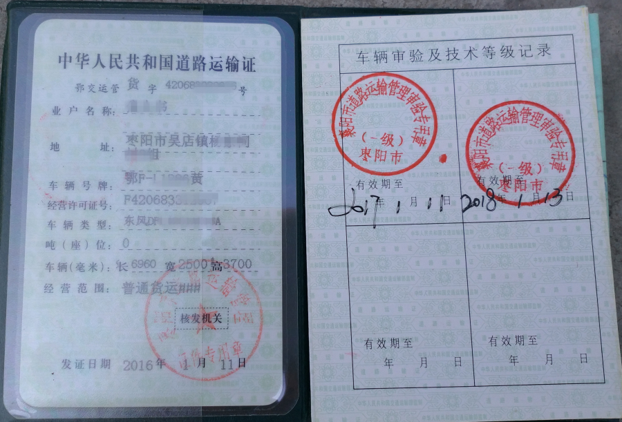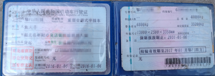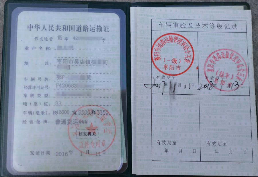 掛車行駛證和運輸證