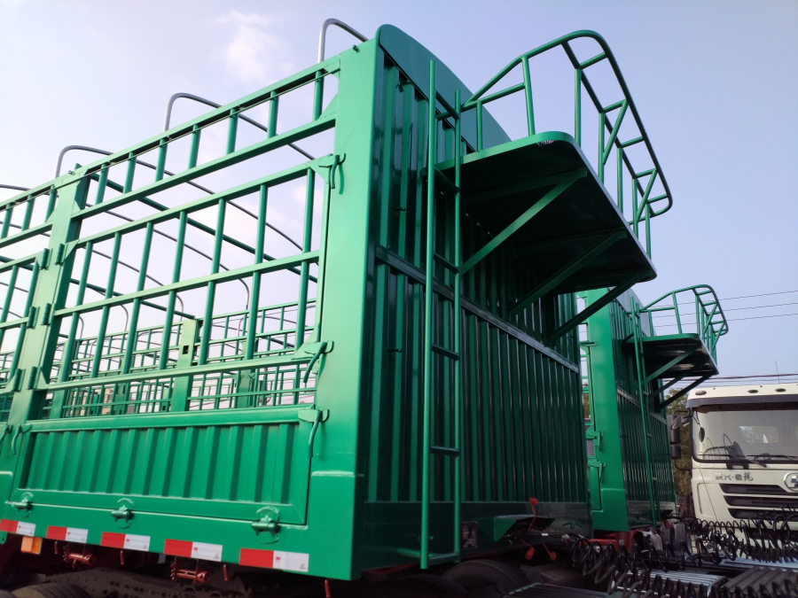 來自陜西寶雞某物流公司的高老板和郝老板在歐陽華俊定做的2臺綠閃銀色倉欄半掛車完工交付,感謝遠道而來定車的客戶,不遠千里來我們廠定做半掛車,歐陽華俊定不負客戶期望,車廂美不美,質量咋樣,看了提車照片后,你說了算!