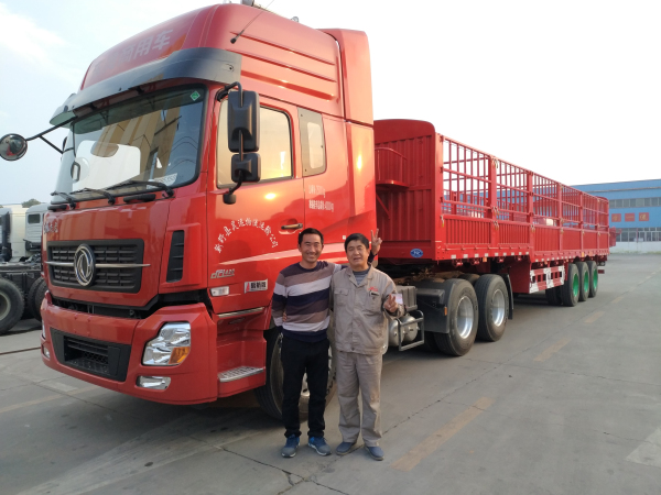 歐陽華俊對該車型的車架等非關鍵部位進行有效“瘦身”,自2015年推出至今,已經順利通過了市場的嚴格檢驗。華俊大紅的車廂與東風天龍420啟航版中國紅色差小,車頭和掛車相當協調,油漆做工那真是沒話說,誰用誰喜歡,全車紅寓意生意紅紅火火!