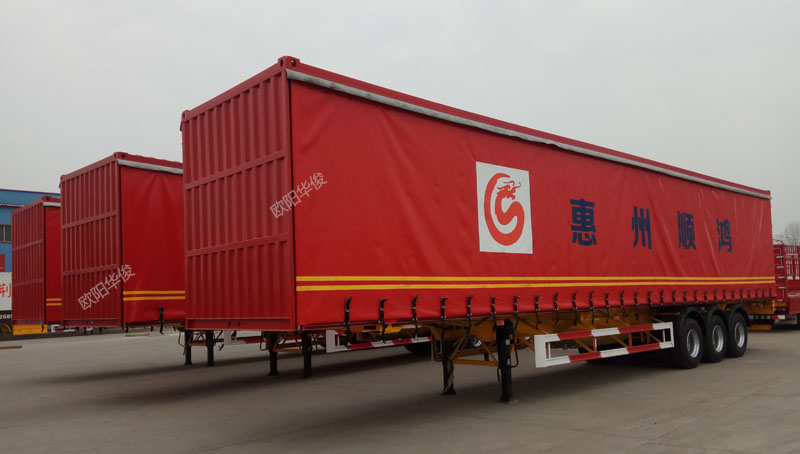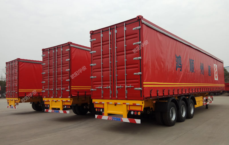 一、骨架半掛車配直梁式側(cè)簾篷布車廂: