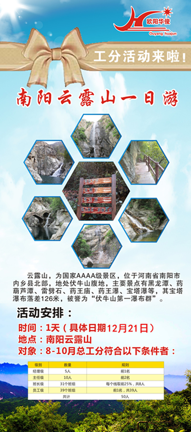 歐陽華俊員工福利活動再次來襲!南陽云露山一日游活動即將開始啦