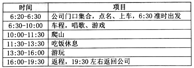 2、此次活動屬于公司集體活動,費用(車費、午餐及景點門票等)由公司承擔,人員及組隊已提前安排好,不適宜帶家屬參加;