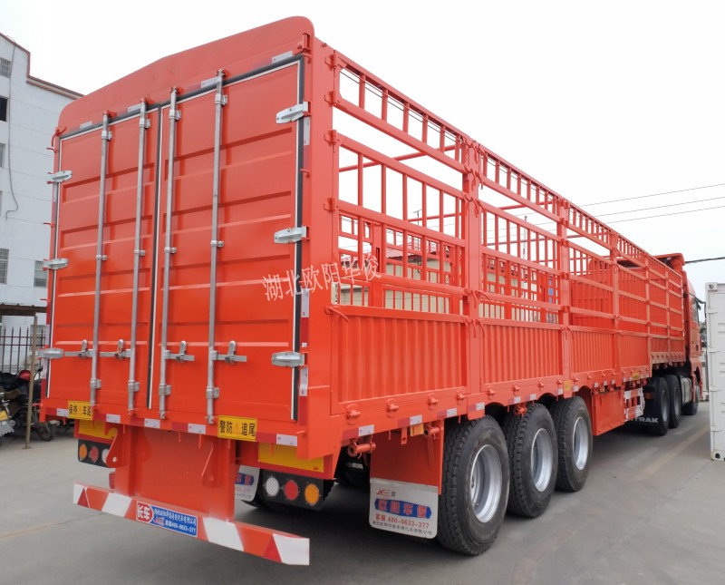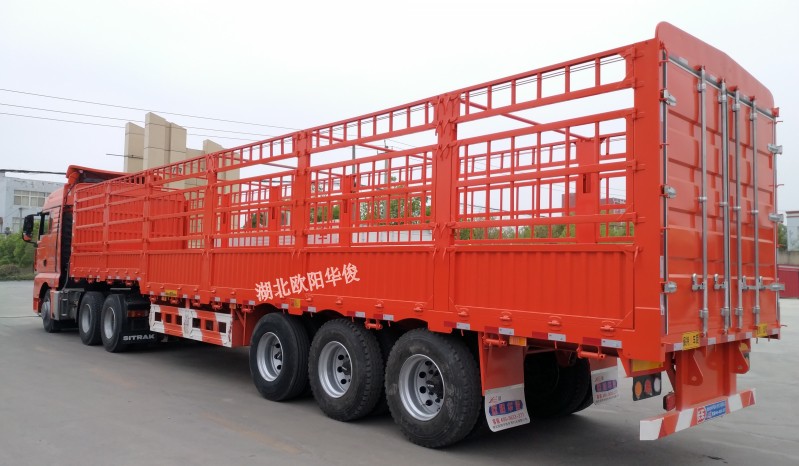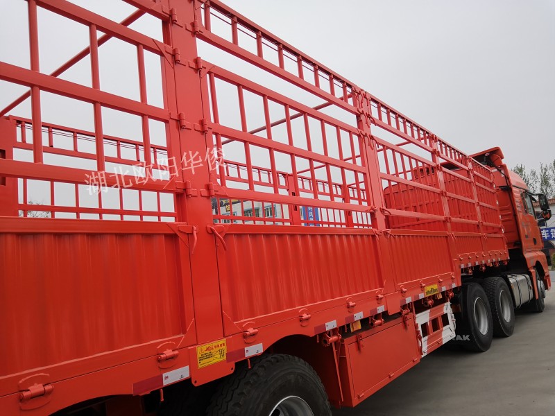 恩施客戶的13米高欄半掛車尺寸為:13米長×2.55米高×2米高。花欄樣式為上層30公分,中層80公分,墻板60公分。每邊6塊墻板,高板2塊,低板4塊。花欄的第一塊和第二塊向后開,低板的花欄對著開。這樣開啟花欄的優(yōu)勢在于第一塊花欄打開時不會碰到車頭的駕駛室,低板對著開方面裝卸貨物。