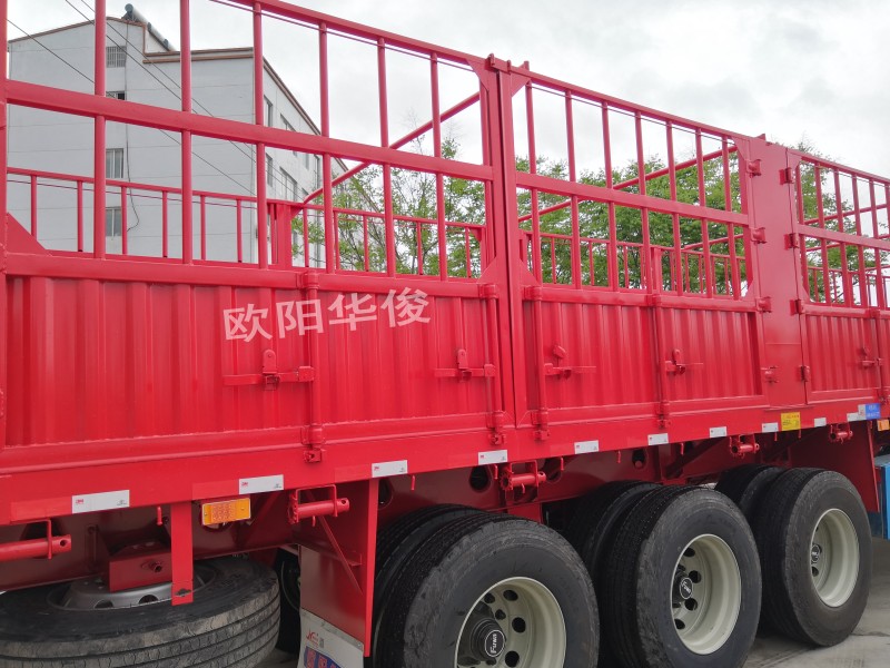 湖北歐陽華俊專用汽車有限公司生產的大開門帶鎖桿式倉柵式半掛車有如下特點: