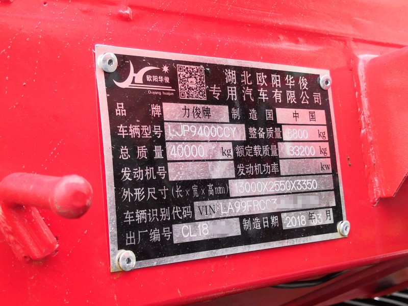 歐陽華俊自己的合格證:力俊牌LJP9400CCY