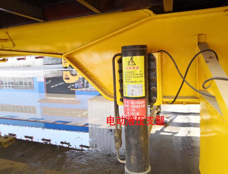 此支腿為電動液壓支腿,底板3.0厚花紋板,鋪9根底槽。配廣東富華13T車橋16T剎車系統(tǒng),板簧為10片。