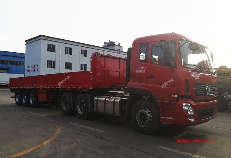 ▲ 10.5米欄板半掛配同色系天龍牽引車頭整裝待發(fā)