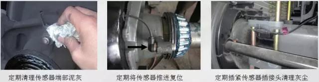 4、在每次保養車軸或更換制動蹄片時及時清除傳感器及齒圈表面灰塵或油污,保持齒圈或傳感器前部的清潔。
