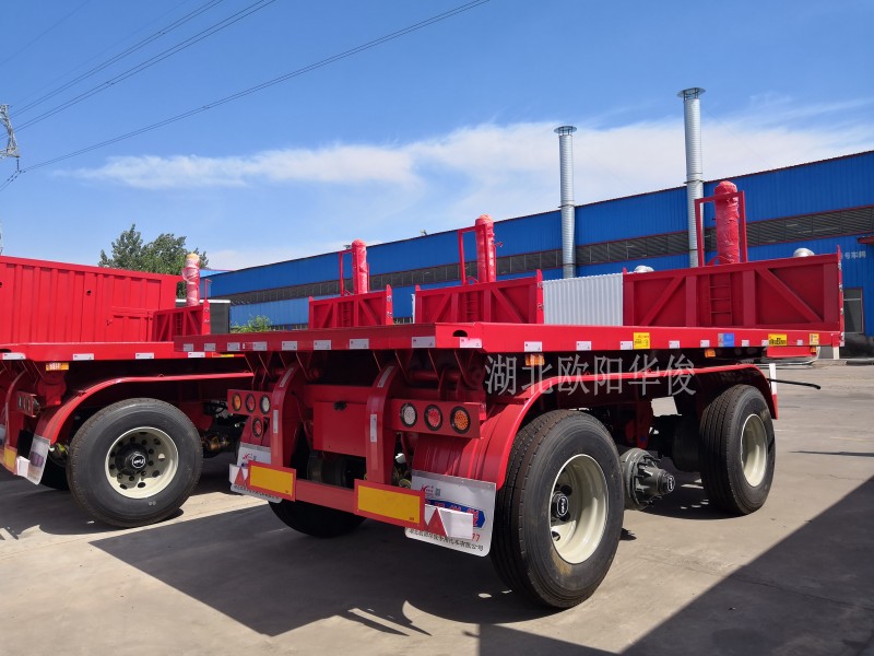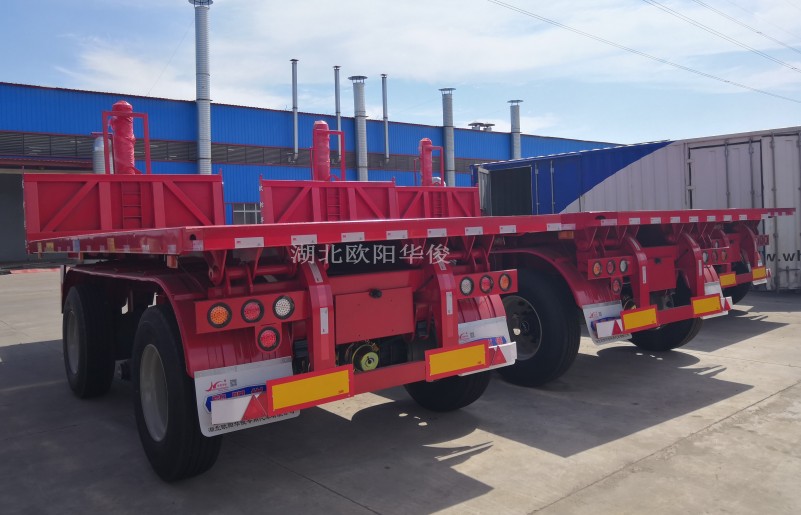 配置:5.0厚高強平板,邊梁140加厚槽鋼,邊4底5,車橋采用廣州華勁車橋16噸車橋16噸剎車,加寬加厚鋼板。取力器、液壓油箱,液壓油配套好??蛇x裝輪胎鋼圈。