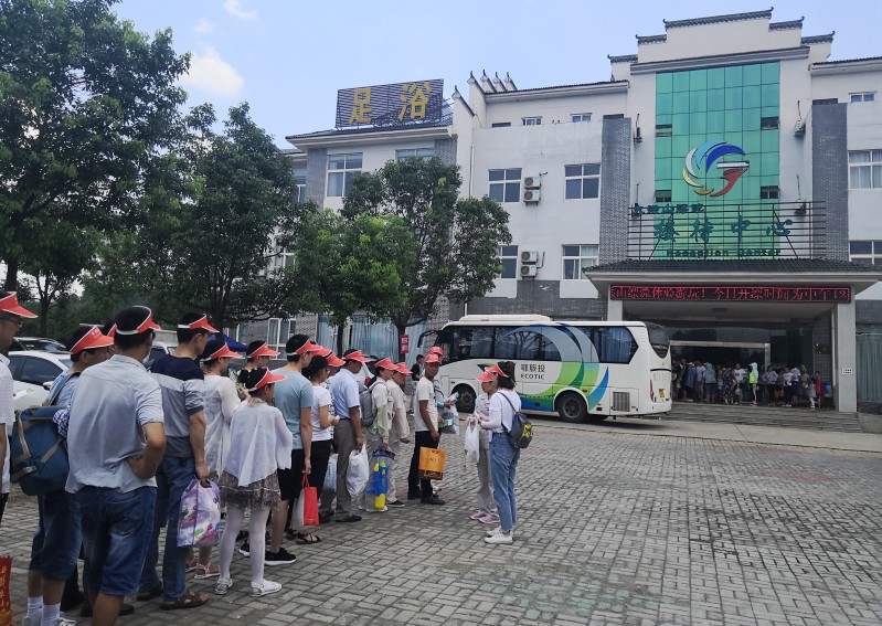7月20日早上,一起參加活動的員工們和家屬們在公司門口等待著。在公司行政人事部相關(guān)人員組織下,清點好人數(shù),我們出發(fā)啦!