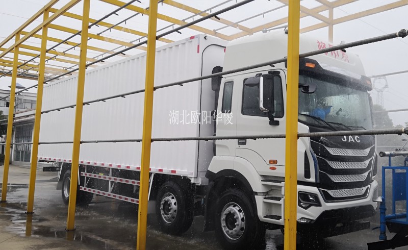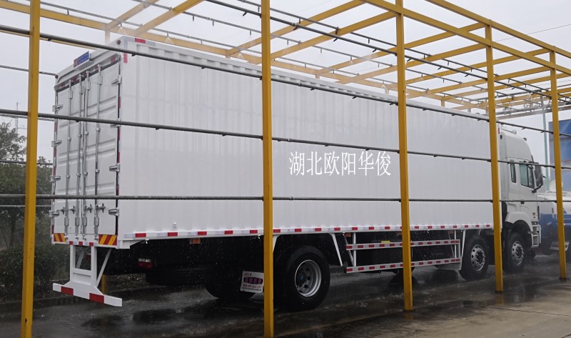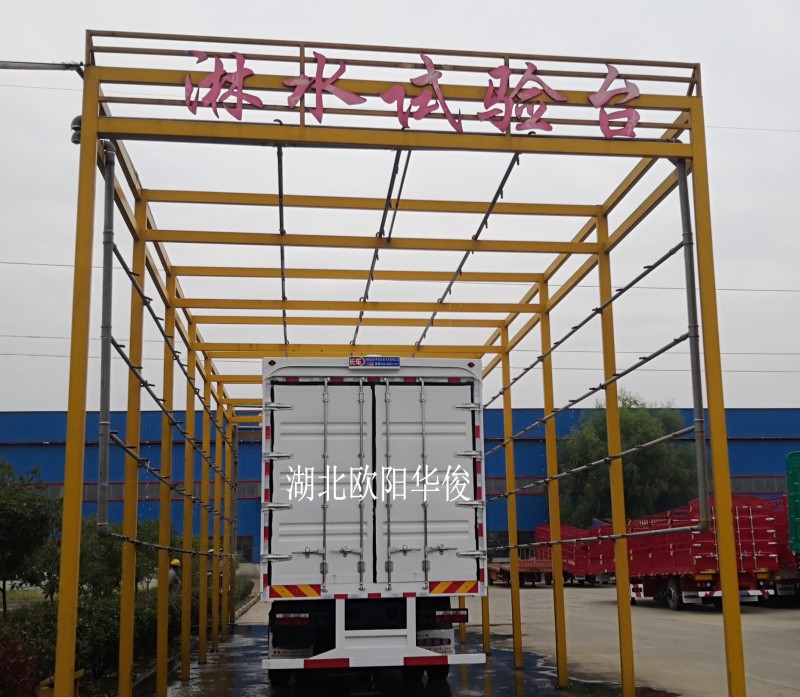 湖北歐陽華俊專用汽車有限公司早在2014年年底公司投資建立了“淋水試驗臺”,目的是檢驗本公司生產的所有廂式運輸車的車身密封性,更進一步提高廂式運輸車的產品質量,踐行“車行天下,質求完美”的理念,歐陽華俊淋水試驗臺成為廂式運輸車檢驗工序中的福音。