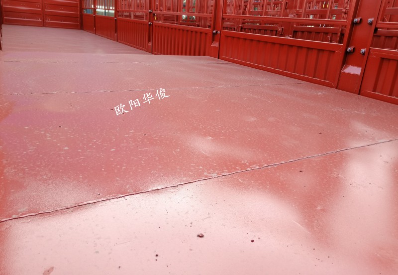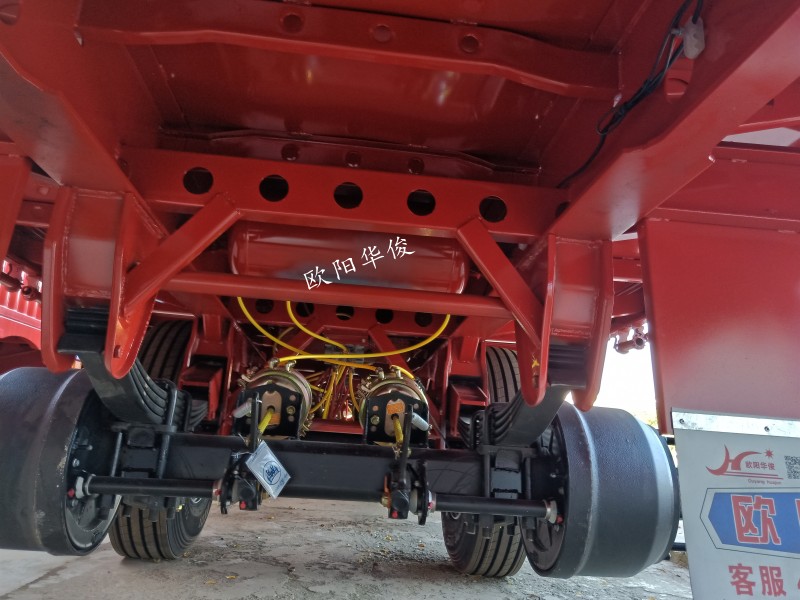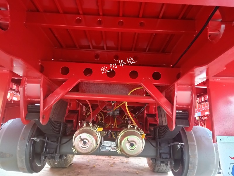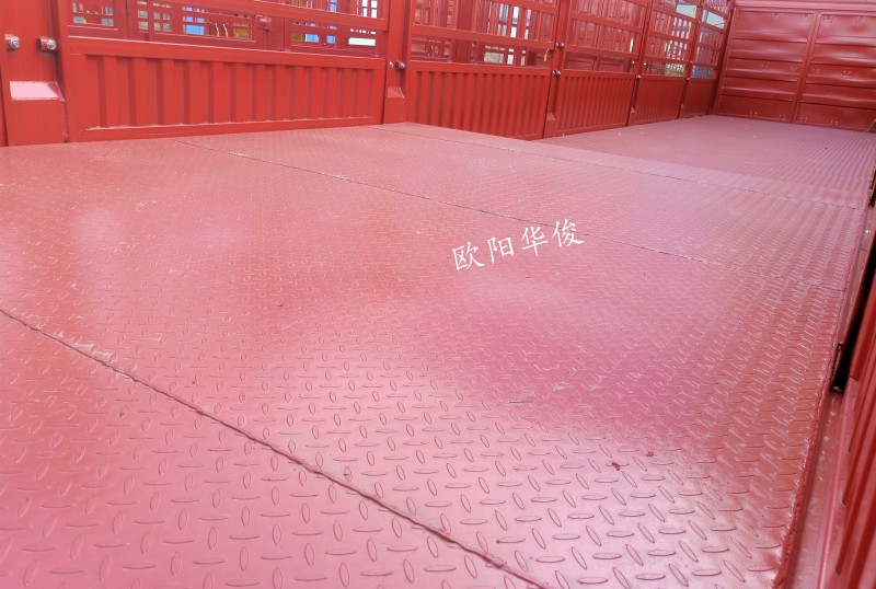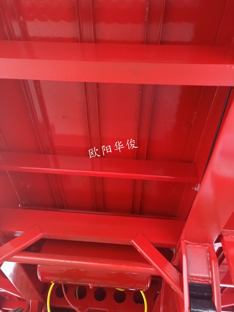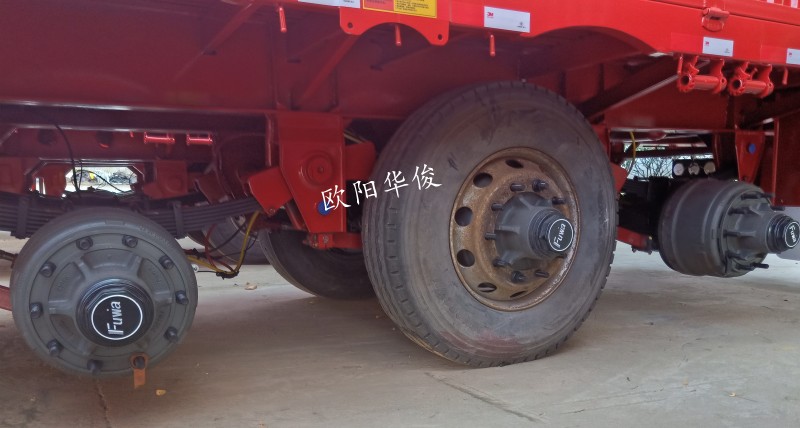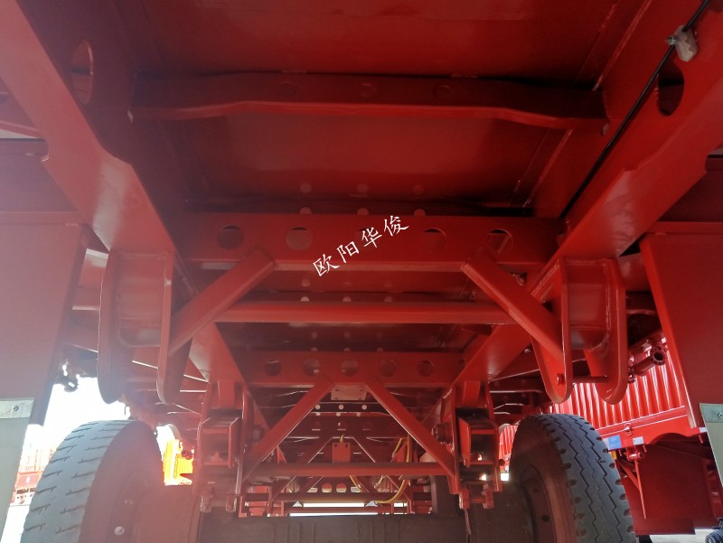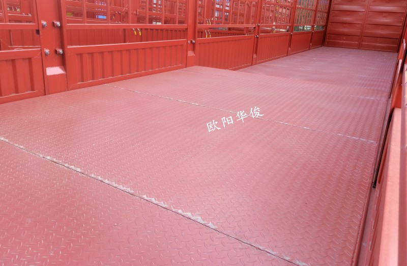 此車13米長×2.55米寬×1.8米高,華俊大紅,廂式對開門,廣東富華13T車橋,16T剎車,2.75mm花紋板,貫穿梁高板8#型材,低板100直型材,下鋪9根5#槽鋼,降低車身自重的同時,可自由走叉車。