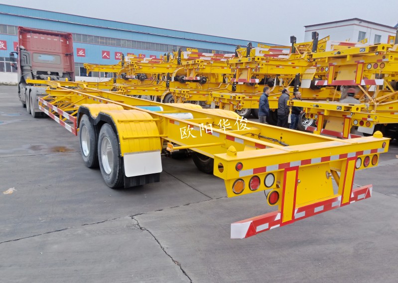 骨架式半掛車專門用于各種集裝箱的運輸,耐磨性、堅韌性、密封性、防腐蝕性超出常規底板5倍,不起皮、不刨刺、不吸水,使用壽命高達10年以上。