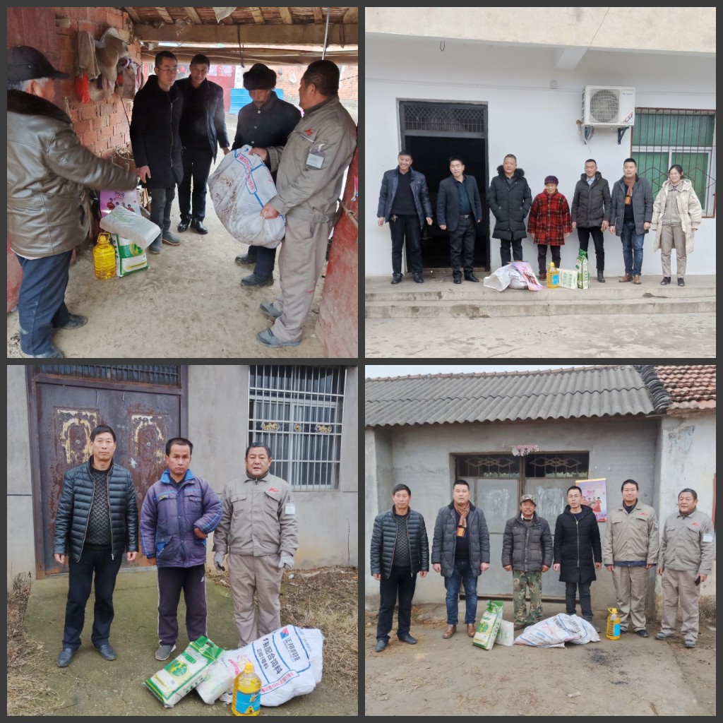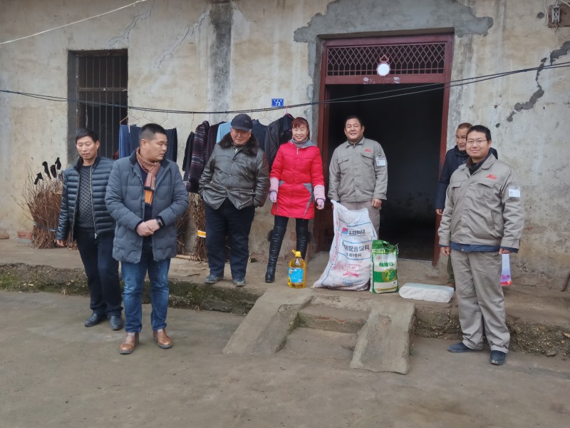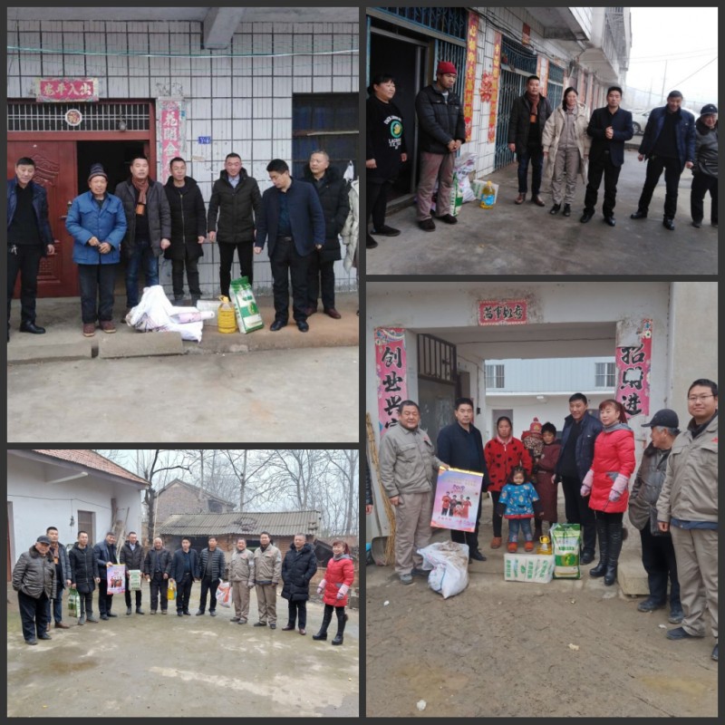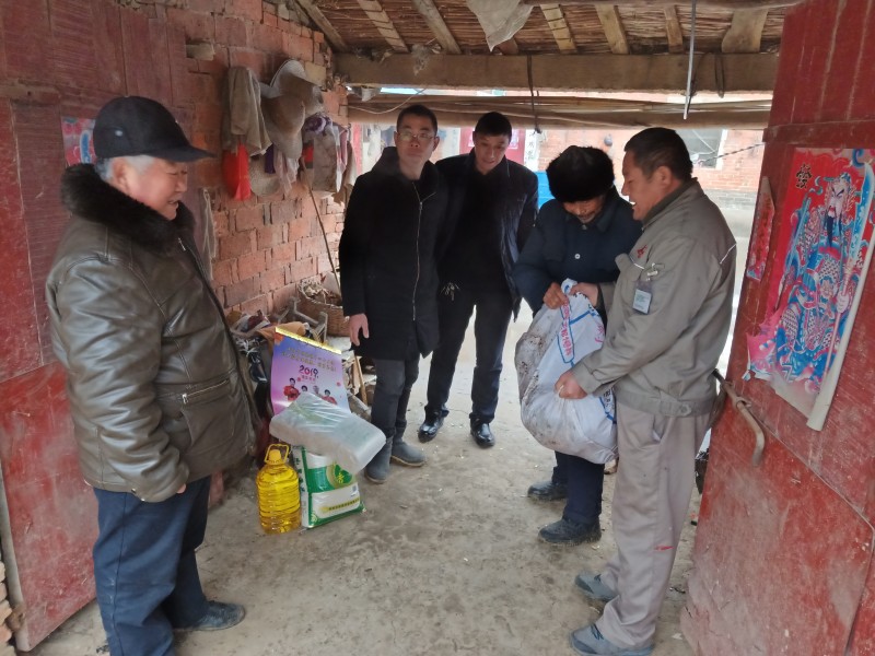 2019年1月14日歐陽華俊售后部部長及辦公室主任秦鄂東與棗陽市興隆鎮(zhèn)優(yōu)良社區(qū)村委干部等人在優(yōu)良河村莊走訪慰問困難群眾。