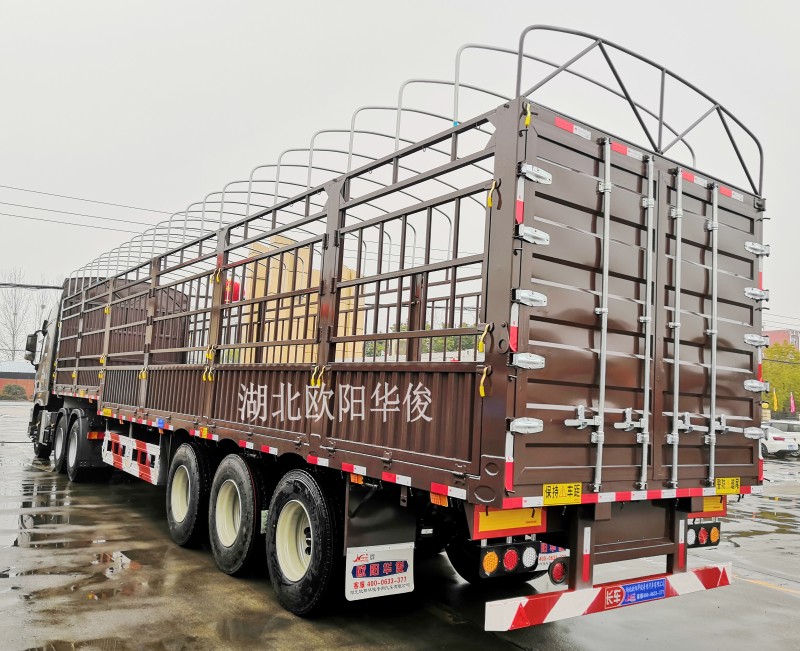 好消息:歐陽華俊2019全新超輕型高欄半掛車隆重上市啦,自重6噸左右,能上叉車的超輕型高欄半掛車銷量火爆,新型合金式底板,此款底板的防水效果及抗壓效果都讓客戶很滿意。