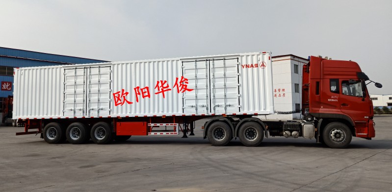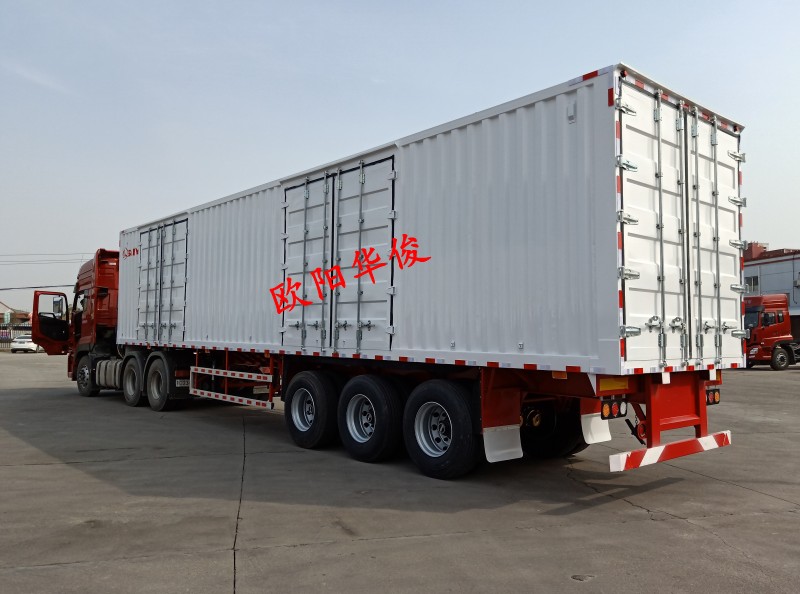 廂式半掛車主要適用于家用電器、輕紡貨物、煤炭、沙石等建筑材料以及圖盤貨物的運輸。歐陽華俊生產的廂式半掛承載力強,安全系數高、設計合理、堅固耐用,工藝制造先進,是您的不二之選!