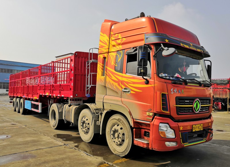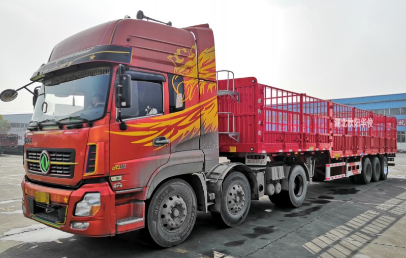 拉煤專用!華俊13米短鎖桿大開門高欄交付河南客戶