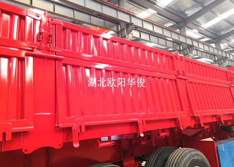 10.5米翻自卸的墻板高度為60公分高,5支舉升油缸,1支移位油頂。按客戶要求設計的可以左右兩邊翻,也可一邊翻,另一邊為正常欄板樣式,可有效地提高裝卸機運輸散裝零散貨物的運輸效率。自卸式半掛車適用于煤炭、礦石、泥沙、建筑物料等散裝零散貨物的運輸。