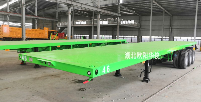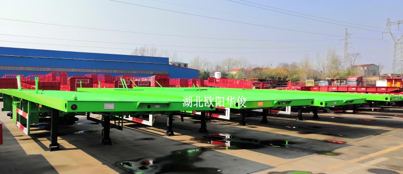 出口車!歐陽華俊20臺40英尺平板半掛車交付海外客戶
