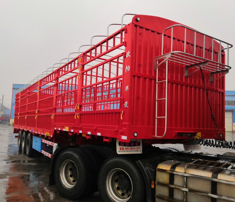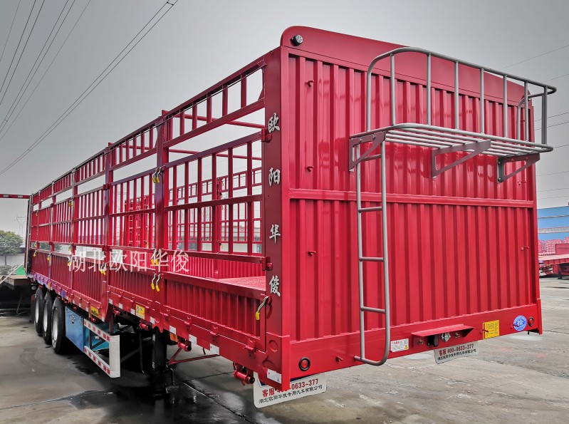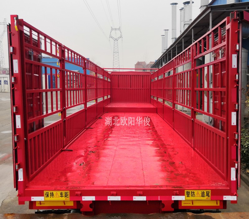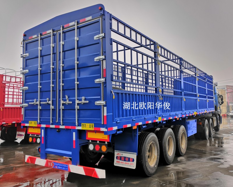 好消息:歐陽華俊2019全新超輕型高欄半掛車隆重上市啦,自重6噸左右,能上叉車的超輕型高欄半掛車銷量火爆,新型合金式底板,此款底板的防水效果及抗壓效果都讓客戶很滿意。