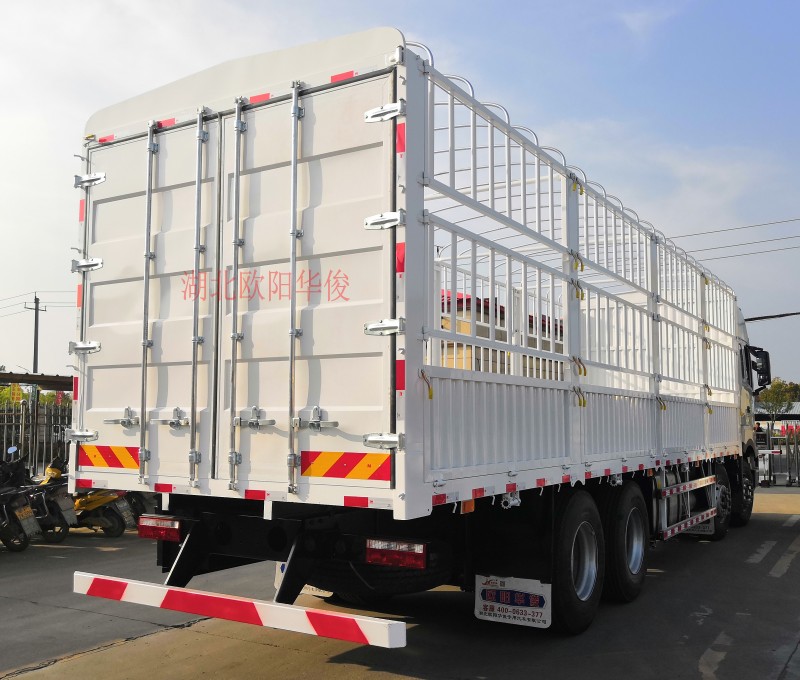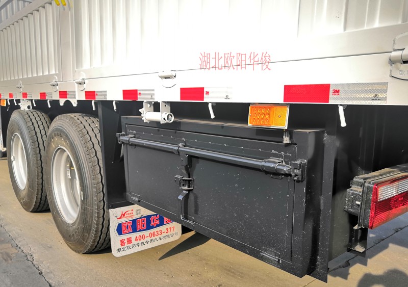 下面這臺白色的9.6米高欄車廂是河南楊師傅訂的,因拉貨需要車廂底板采用3.0厚花紋板,邊梁120槽鋼設計制作,立柱180型材2.2米高,墻板花欄不往外漲,整車不變形,車身設計合理,外觀漂亮。
