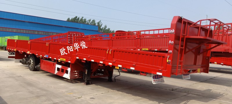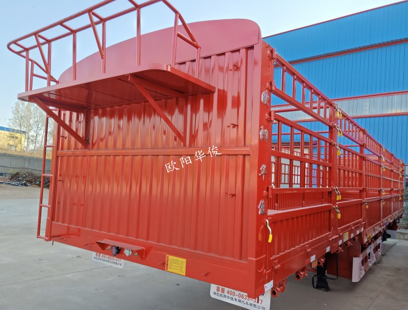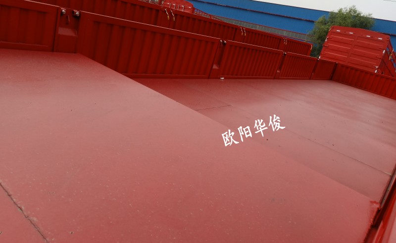 此車13米長×2.55米寬×1.8米高,顏色:華俊大紅,廂式對開門,28T單動支腿,廣東富華13T車橋,16T剎車,板簧:4×20,底板:2.0mm高強平板,整車采用高強鋼制作,車身自重輕。