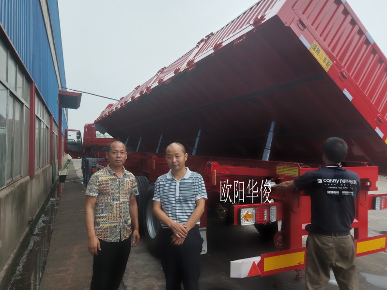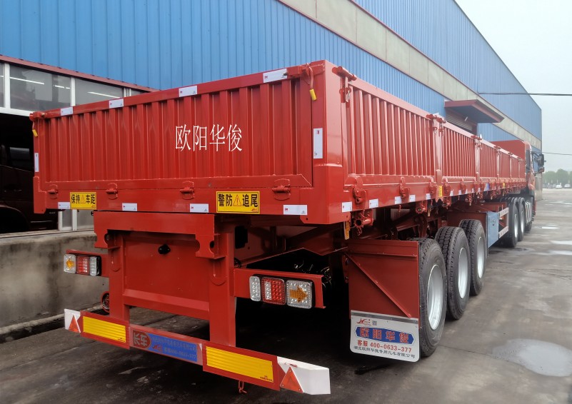 歐陽華俊生產的側翻半掛車車架和車廂縱梁均采用優質高強鋼材焊接而成。自重在6.8-7噸,具有強度高、舉升力強、韌性好,承載能力強,不發生永久變形等優勢。我們以很優質的產品,很健全的售后服務為客戶很大程度降低運輸過程中的后顧之憂!
