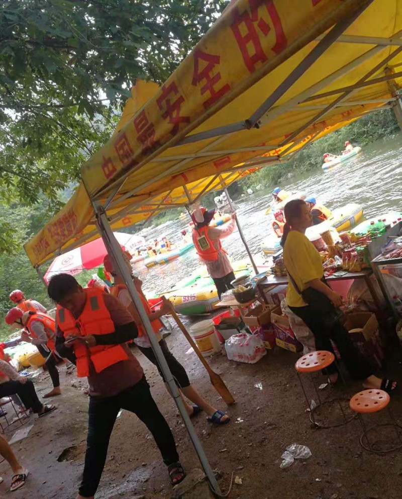 中午11點我們按照預定時間到達地點陸續就座,開始今天的午餐,品嘗當地特色的農家樂,菜肴豐富,大家吃的津津有味,可口的飯菜和即將開始的漂流活動,既緊張又興奮,總是懷著忐忑的心情,期待待會的活動。