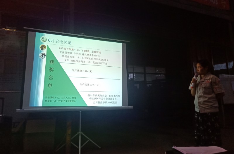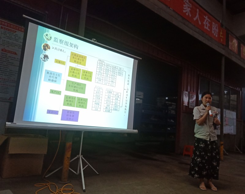 人事主管袁主任對工分制監(jiān)察組輪值制進(jìn)行講解,拉開本次工分制暨安全獎(jiǎng)勵(lì)大會(huì)的序幕。