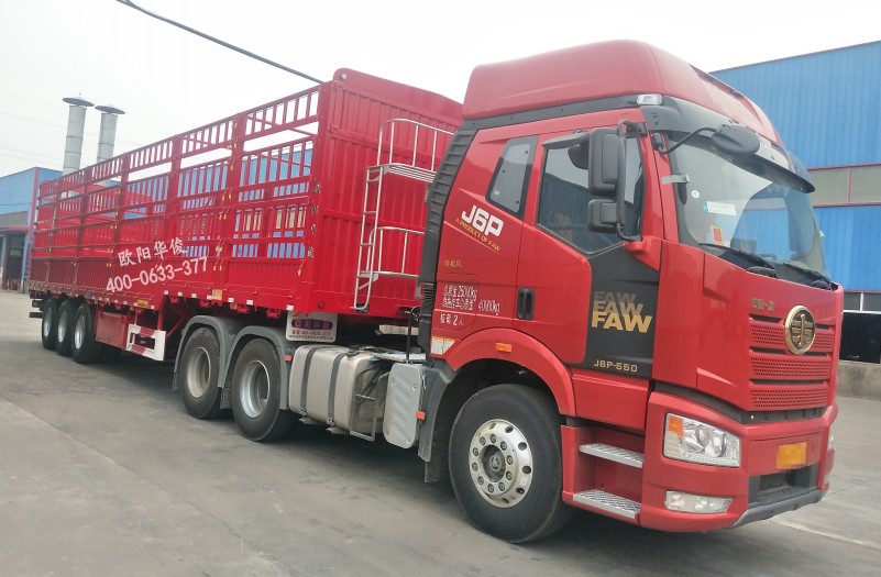你是很棒的!歐陽華俊13米高欄半掛完工交付河南客戶,奔赴財富大道