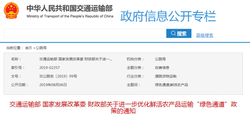 其實在今年8月6日,交通運輸部就發(fā)布了優(yōu)化鮮活農(nóng)產(chǎn)品運輸“綠色通道”政策,政策中提到:
