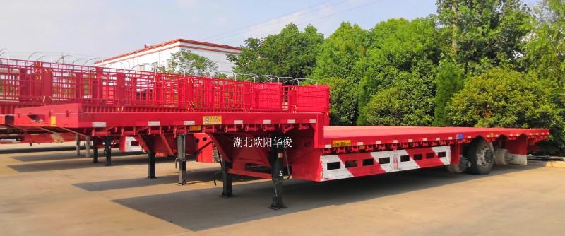 歐陽華俊13.75米低平板半掛可按客戶要求設計為鋪底槽,方便走叉車配置,也可按客戶要求設計為拉挖機配置,滿足實際貨物運載需求。歐陽華俊掛,必屬精品!歐陽華俊掛質量經得起檢驗......