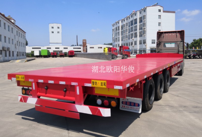 歐陽華俊13.75米低平板半掛可按客戶要求設計為鋪底槽,方便走叉車配置,也可按客戶要求設計為拉挖機配置,滿足實際貨物運載需求。歐陽華俊掛,必屬精品!歐陽華俊掛質量經得起檢驗......