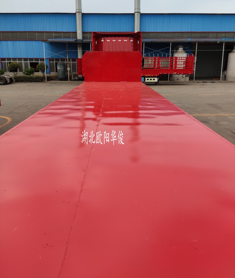 發布日期:2020-06-02 08:35:33 編輯:歐陽華俊 瀏覽量:1545客戶對半掛車自重要求越來越嚴苛,市場趨勢逐漸傾向輕量化車型,歐陽華俊迎合市場趨勢,滿足客戶需求,生產各款輕量化車廂。這不,長沙湘東王總喜提了輕型寶鋼12米平板半掛車,質量優質,價格優惠。