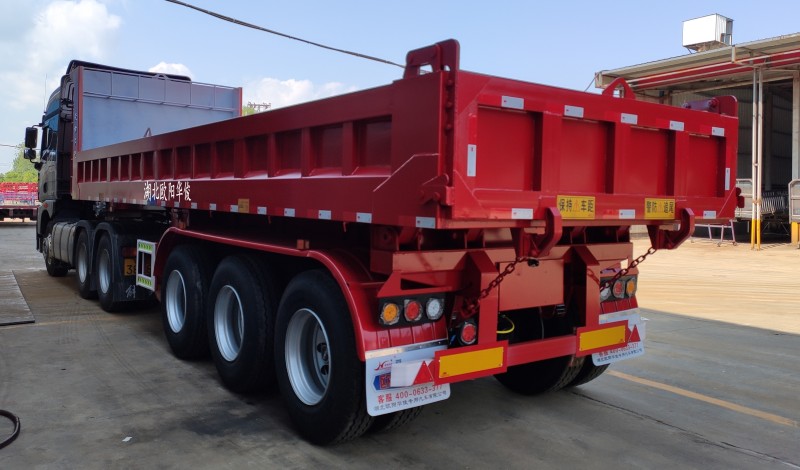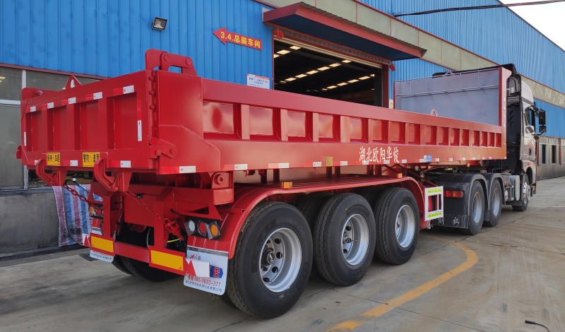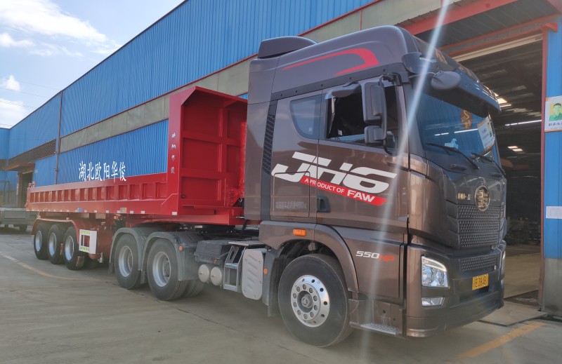 華俊堅固耐用9.5米后翻自卸半掛車交付秦總-發車宜昌