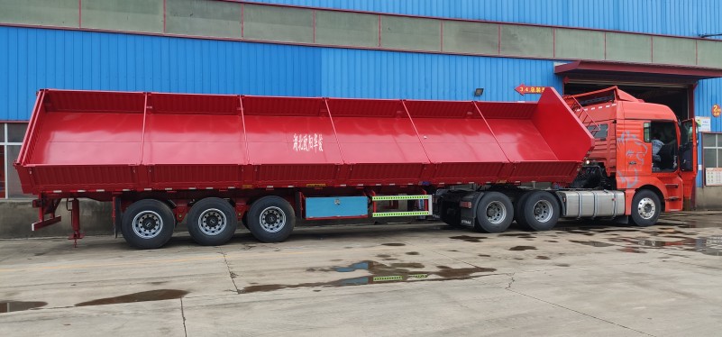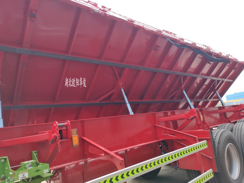 2、雙側(cè)翻結(jié)構(gòu),按客戶要求設(shè)計(jì)的可以左右兩邊翻,也可一邊翻,另一邊為正常欄板樣式,油缸舉升速度快,裝卸貨物效率高,大大節(jié)省卸料時(shí)間和勞動(dòng)力,縮短運(yùn)輸周期,提高生產(chǎn)效率,降低運(yùn)輸成本。