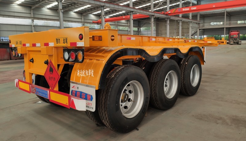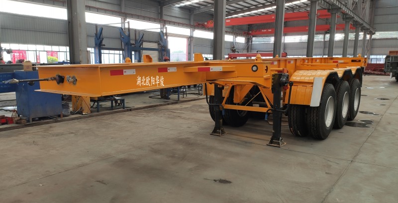 區(qū)域銷(xiāo)售經(jīng)理免費(fèi)為您提供方案【華俊熱銷(xiāo)】?jī)膳_(tái)20英尺危險(xiǎn)品骨架半掛車(chē)配盤(pán)式制動(dòng)+空氣懸掛完工啦