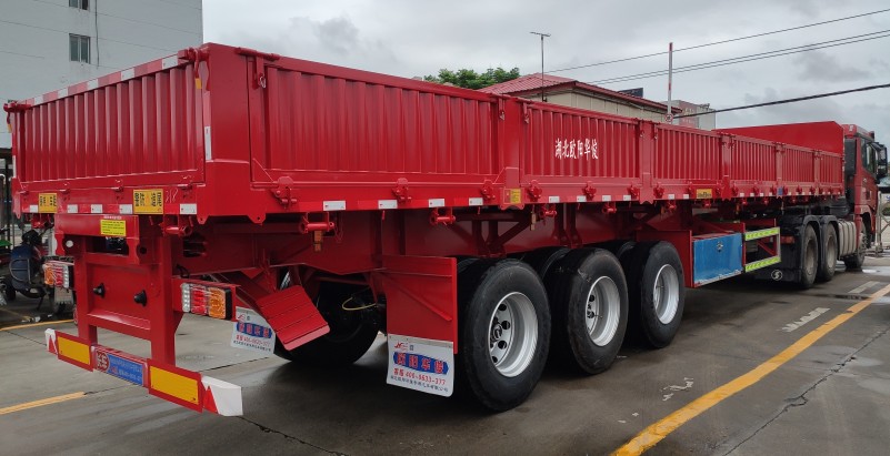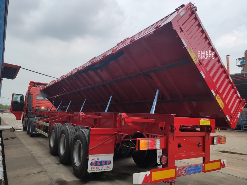 側翻自卸半掛車大梁、廂板、邊梁及其它部件均選用國內一流鋼材,鋼材決定了質量,決定了掛車的使用壽命,贏得質量就是贏得金錢。歐陽華俊擁有優質的鋼材,精湛的焊接技藝,為您打造滿意的它。