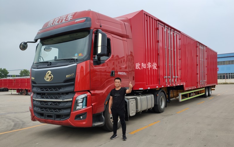 【華俊靚車】物流選擇13.95米骨架集裝箱交付襄陽付總