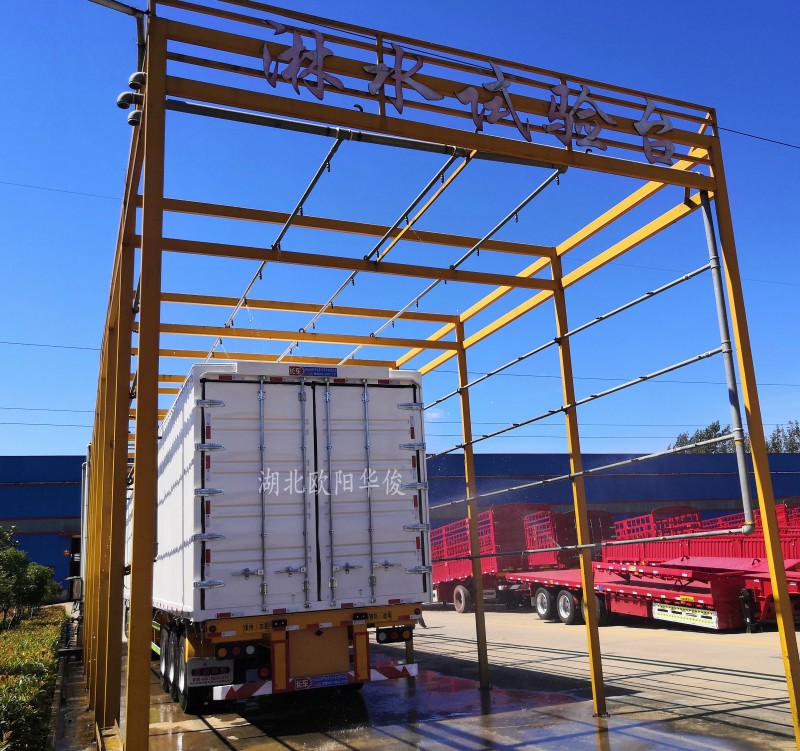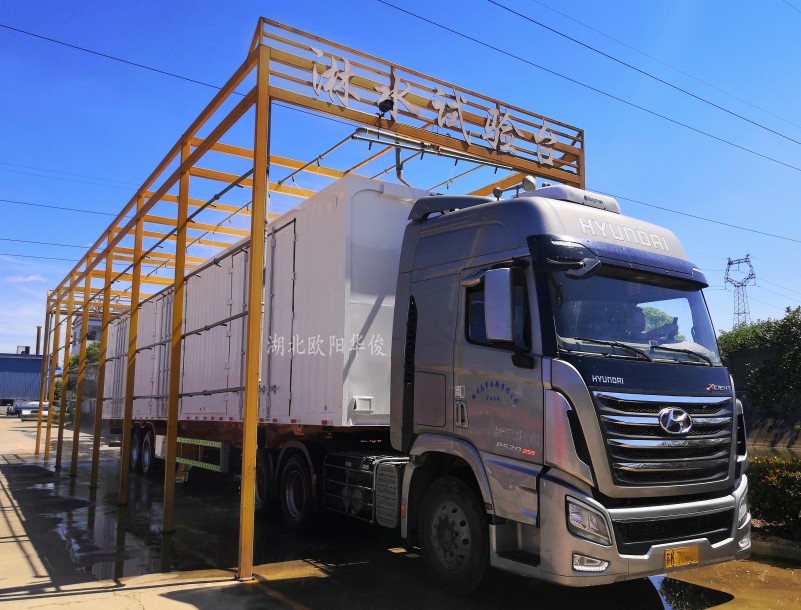 湖北歐陽華俊所生產(chǎn)的廂式集裝箱半掛車、飛翼半掛車,因設(shè)計(jì)獨(dú)特,結(jié)構(gòu)合理,外形美觀,各類性能指標(biāo)均達(dá)到同類產(chǎn)品先進(jìn)水平,并有防雨、防塵、防曬、防盜、耐腐蝕等優(yōu)點(diǎn)。廠區(qū)內(nèi)設(shè)有淋雨試驗(yàn)臺(tái),確保每位提車出廠客戶滿意而歸!《公司設(shè)計(jì)的淋水試驗(yàn)臺(tái),已獲得國家知識(shí)產(chǎn)權(quán)局專利證書》